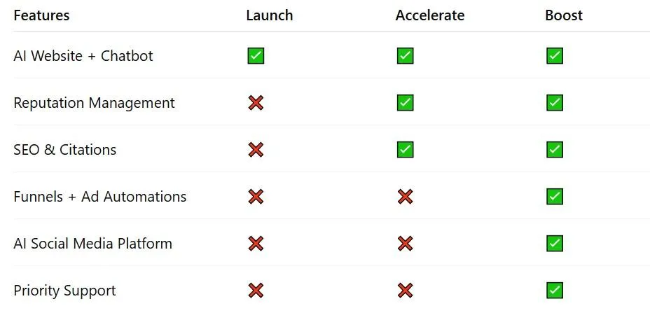 Choose your path to growth. Start with the foundation, optimize your reputation, and BOOST your results with AI-Powered Marketing